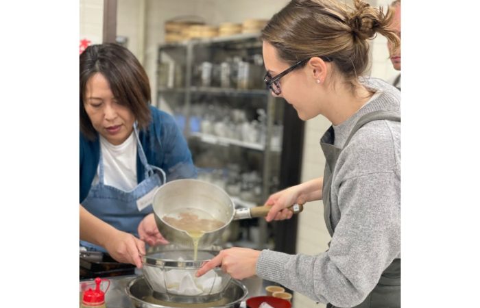 You’ll also learn to make matcha shiratama, which is a deliciously sticky rice cake ball covered in sweet matcha sauce.