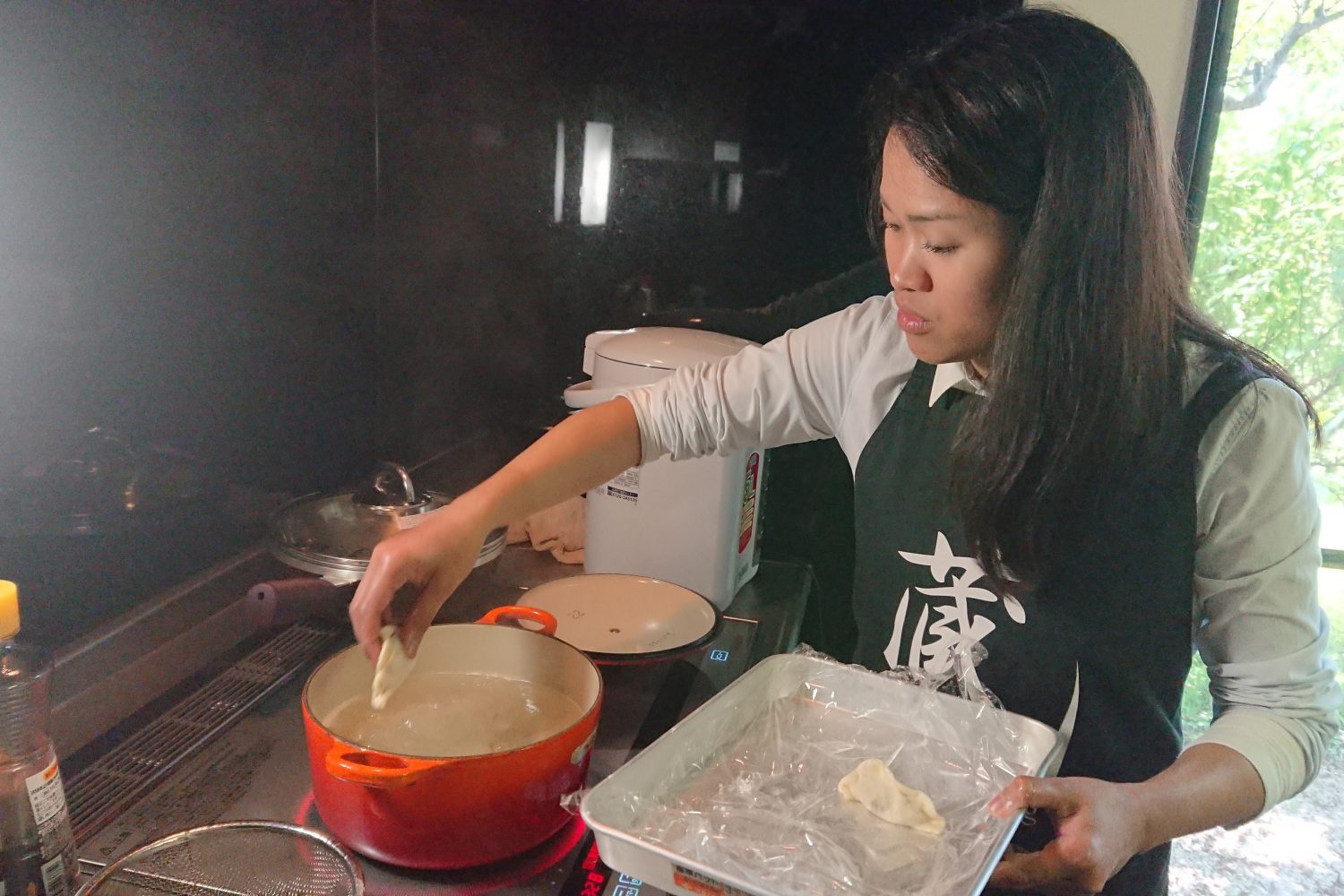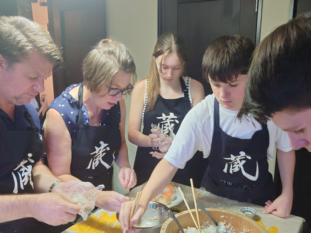 Next, we’ll make some gyoza (dumplings) from scratch! You’ll stretch and wrap the dough, then boil or fry them (both are delicious!)